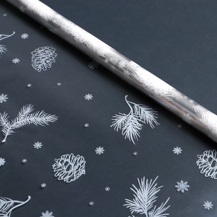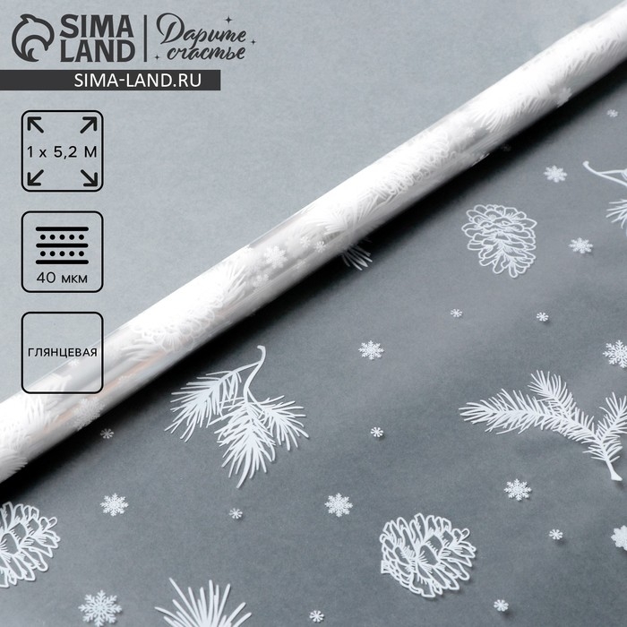 Плёнка упаковочная на Новый год глянцевая «Шишки», белая, 1 х 5.2 м