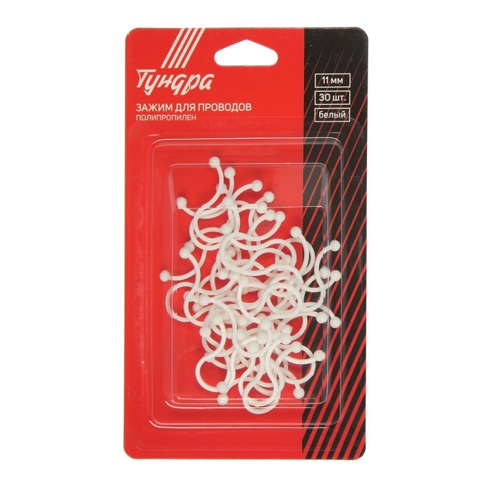 Зажим для проводов ТУНДРА, d=11 мм, цвет белый, 30 шт.