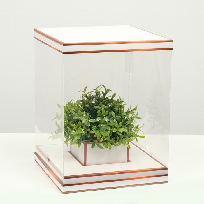 Коробка для цветов с вазой и PVC окнами складная, бронза, 23 х 30 х 23 см