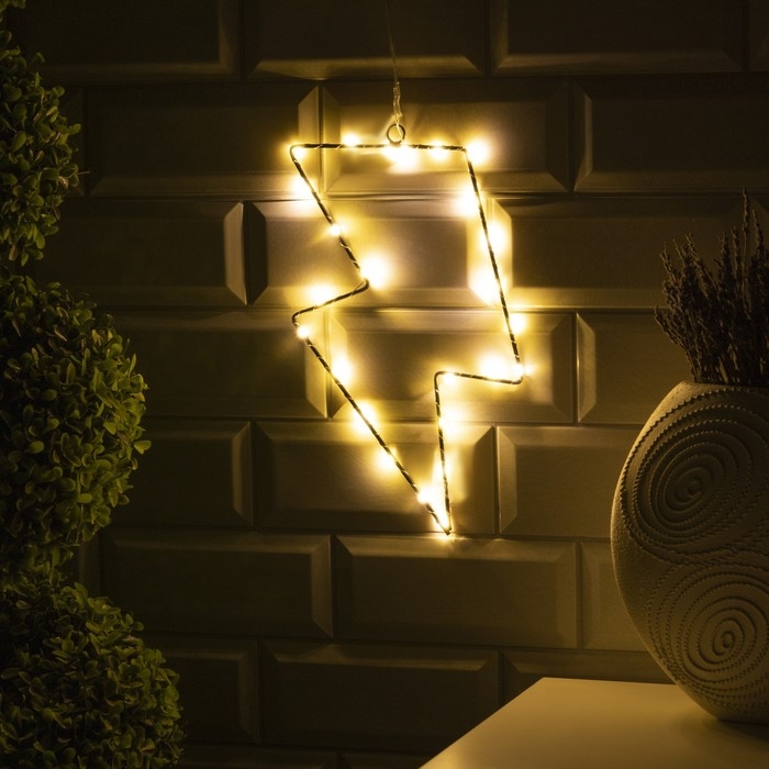 Светодиодная фигура «Молния» 16 × 29 см, металл, батарейки ААх2 (не в комплекте), свечение тёплое белое