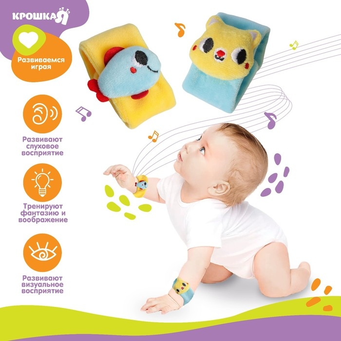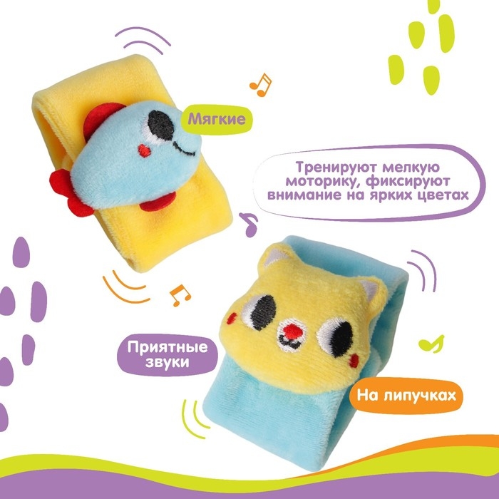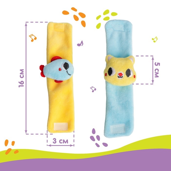 Набор браслеты - погремушки «Котик и рыбка», 2 шт, Крошка Я
