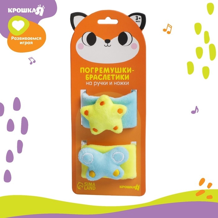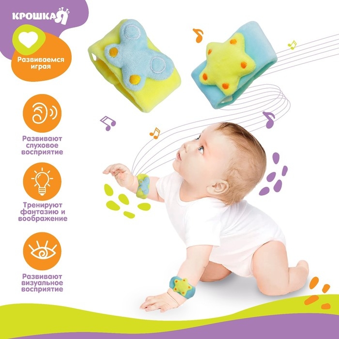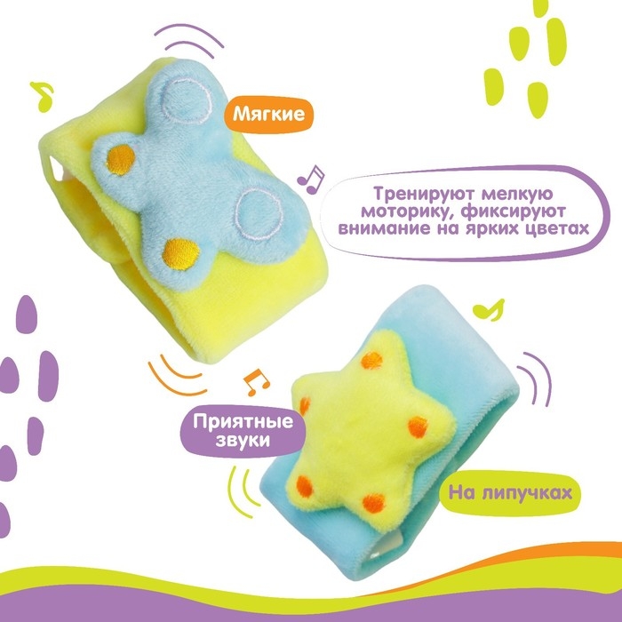 Набор браслеты - погремушки «Бабочка и звездочка», 2 шт, Крошка Я