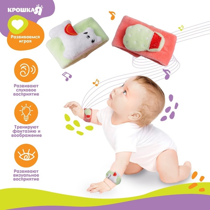 Набор браслеты - погремушки «Котик и рыбка», 2 шт, Крошка Я