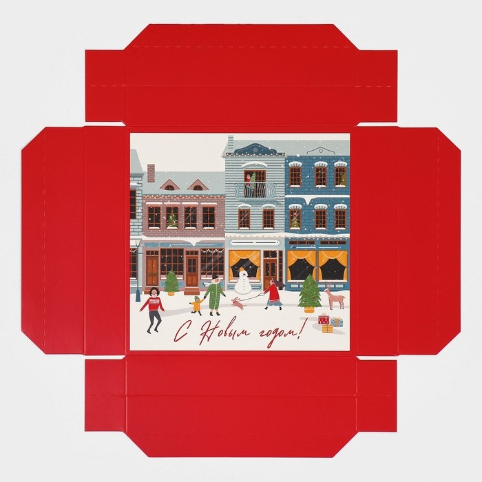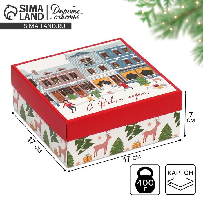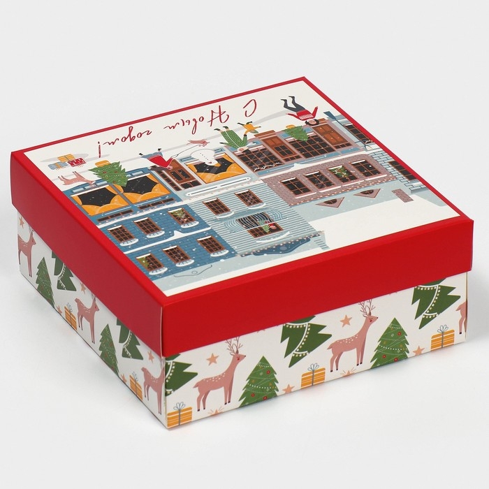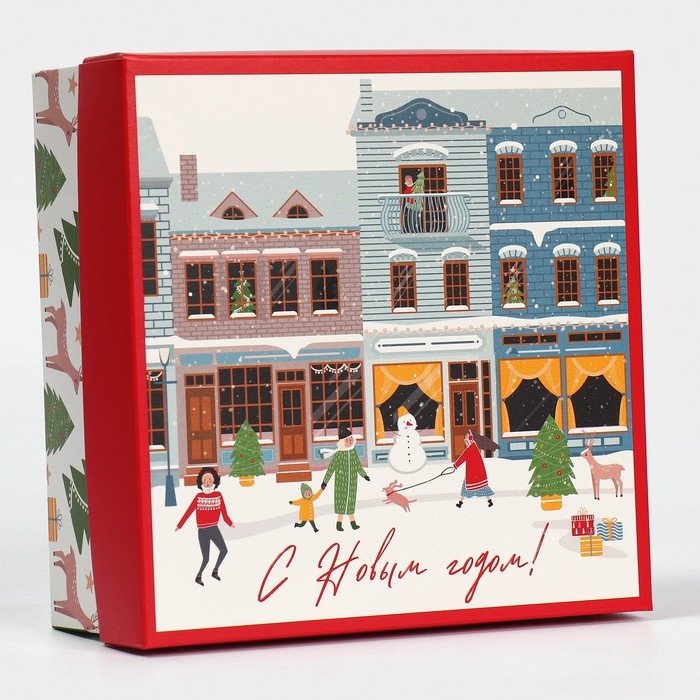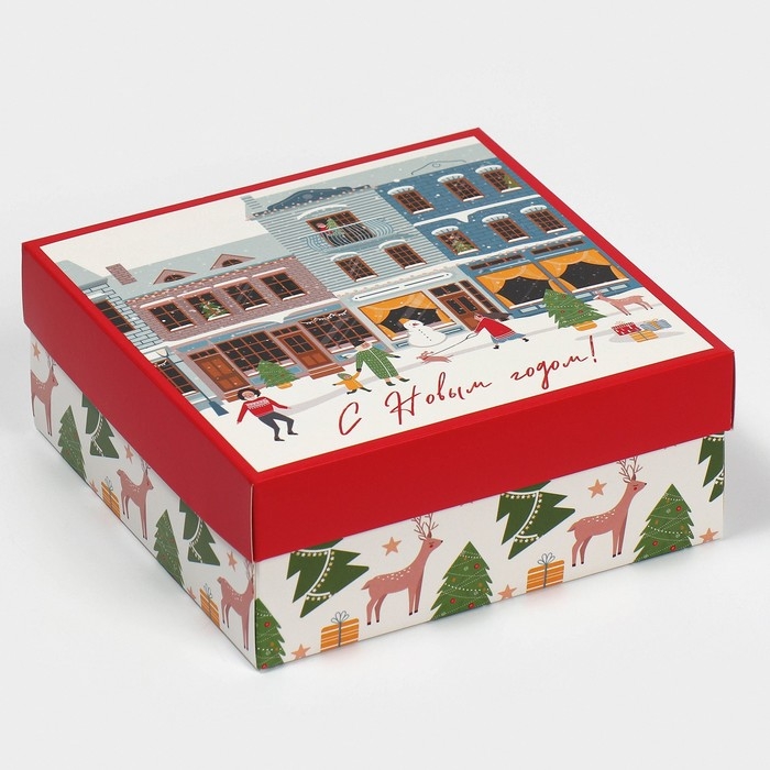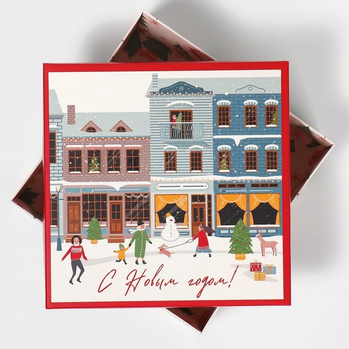 Коробка новогодняя складная «Новогодний город», 17 х 17 х 7 см, Новый год
