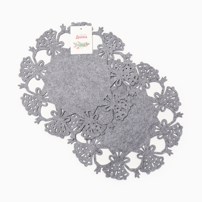 Набор новогодних салфеток Доляна «Колокольчики», цвет серый - 2 шт