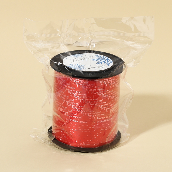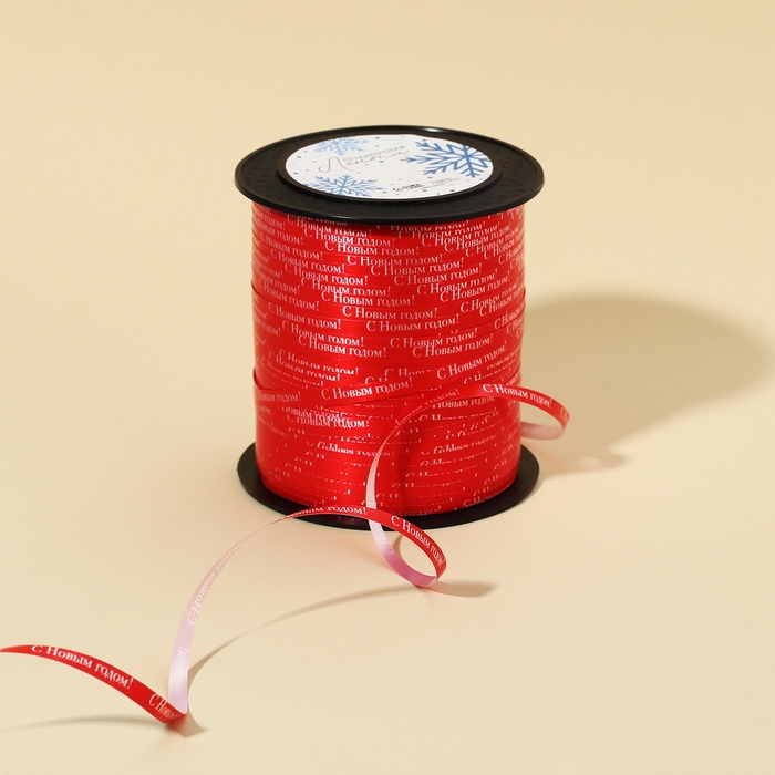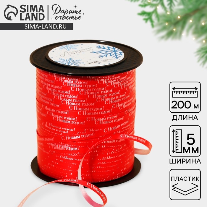 Лента для декора и подарков «С Новым годом!», красная, 0.5 см × 200м