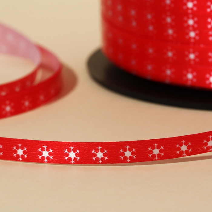 Лента для декора и подарков «Снежинки», красная, 0.5 см × 200м