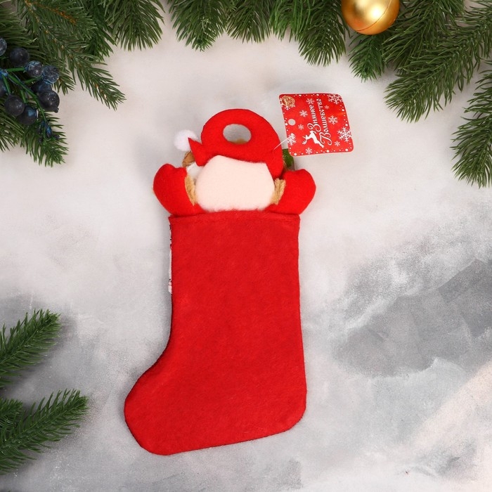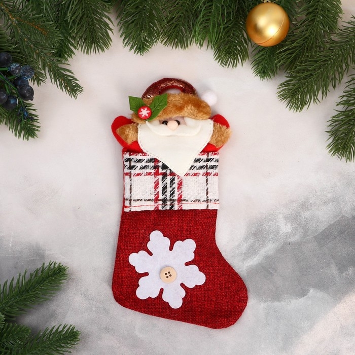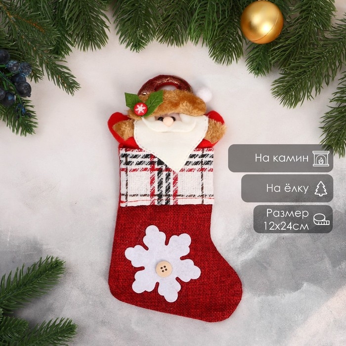 Носок для подарков "Дед Мороз и снежинка с пуговкой" 12х24 см, красный
