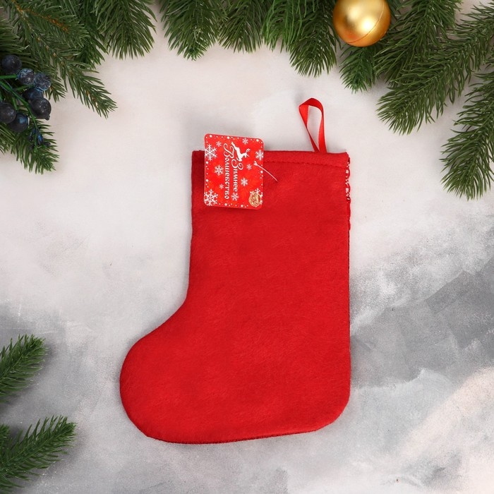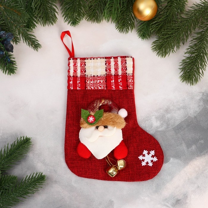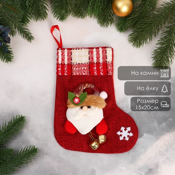 Носок для подарков "Дед Мороз с колокольчиками" 15х20 см, красный