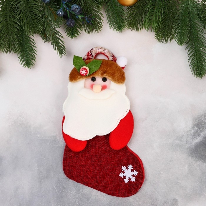 Носок для подарков "Дед Мороз с ягодкой" 11х26 см, бело-красный