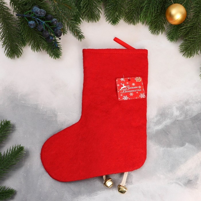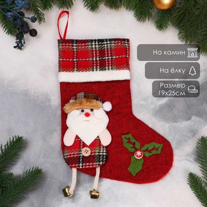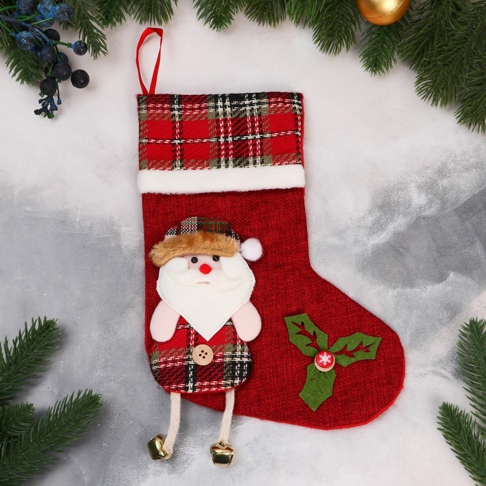 Носок для подарков "Дед Мороз с длинными ножками" 19х25 см, красный