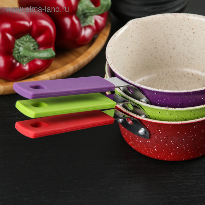 Ковш «Мрамор светлый», 450 мл, силиконовая ручка, антипригарное покрытие, цвет МИКС