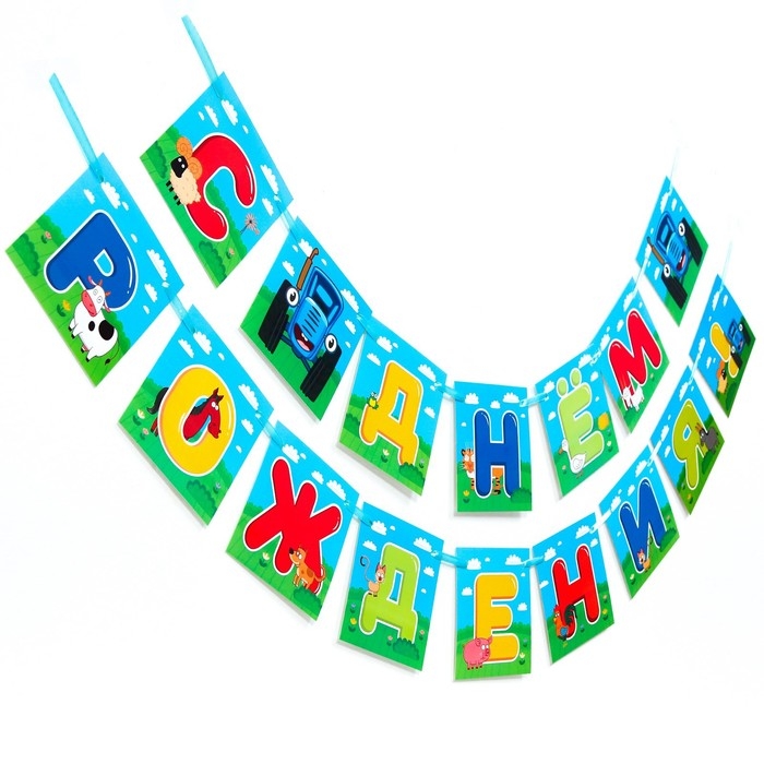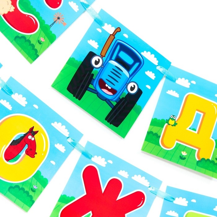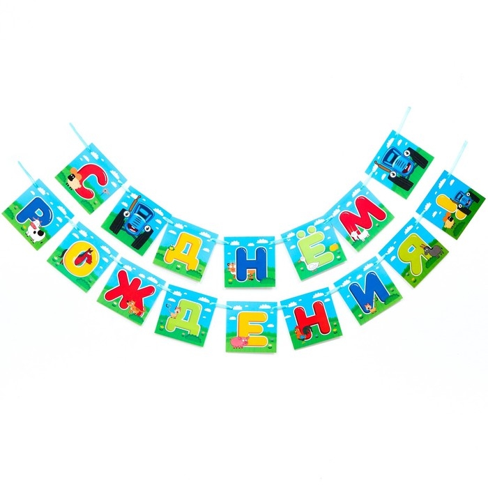 Гирлянда на ленте "С днем рождения", длина 160 см, Синий трактор