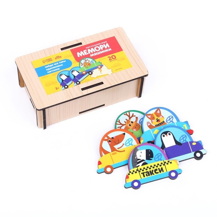 Мемори представляет собой набор из 20 деталей. Фигурки сделаны из дерева, поэтому очень прочные. В деревянном кейсе удобно хранить детали.