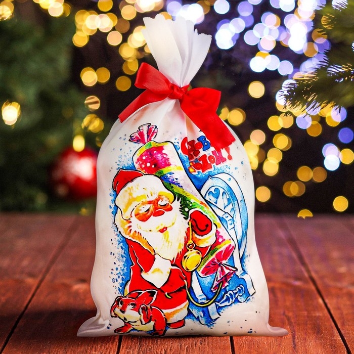 Мешок новогодний "Дед Мороз с хлопушкой", атлас, полноцветная печать, 21х35 см