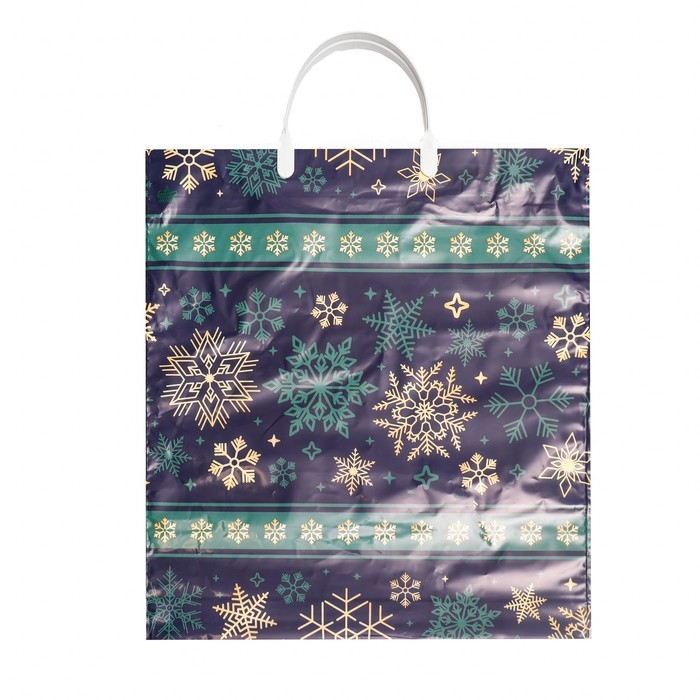 Новый год. Пакет "Изумрудные снежинки", полиэтиленовый с пластиковой ручкой, 44 х 40 см.