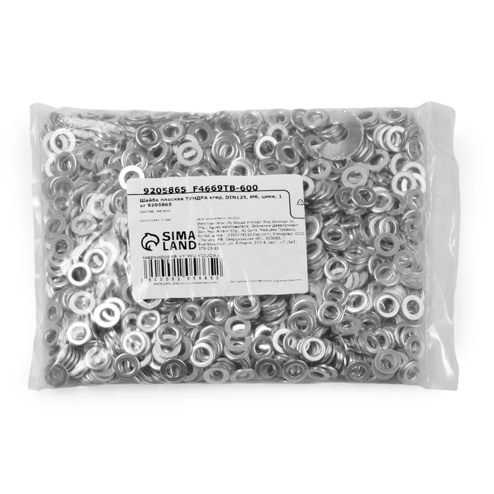 Шайба ТУНДРА, плоская, без фаски, DIN 125, оцинкованная, М6, 1 кг