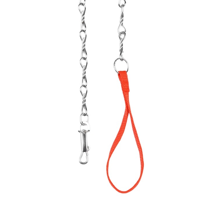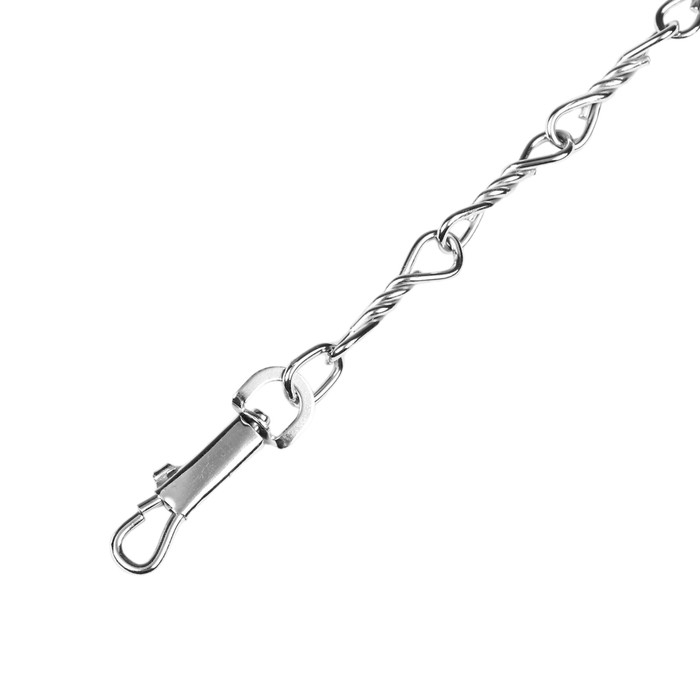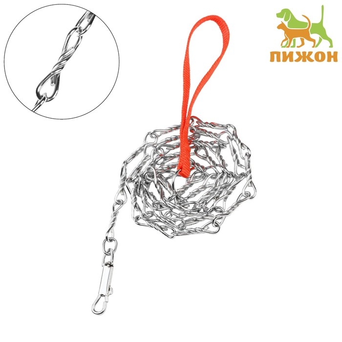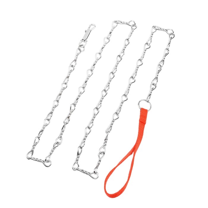 Поводок должен быть прочным и надежным. Металлический поводок полностью соответствует этим требованиям, плюс ко всему это красивый и износостойкий аксессуар. Поводок состоит из хромированной цепочки и мягкой нейлоновой ручки. Ручка прошита армированной нитью, удобно располагается в ладони и не натирает при натяжении. Поводок оснащен стальным карабином.