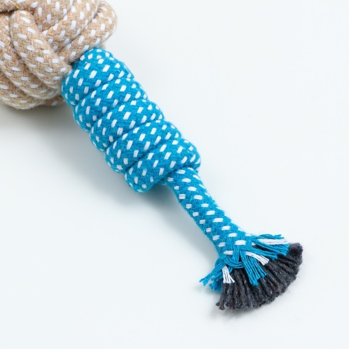 Игрушка канатная плетеная с ручкой, до 40 см, 90 г, синяя/жёлтая/белая