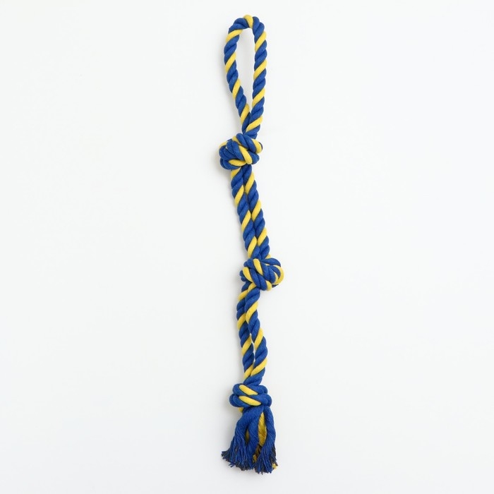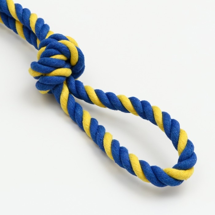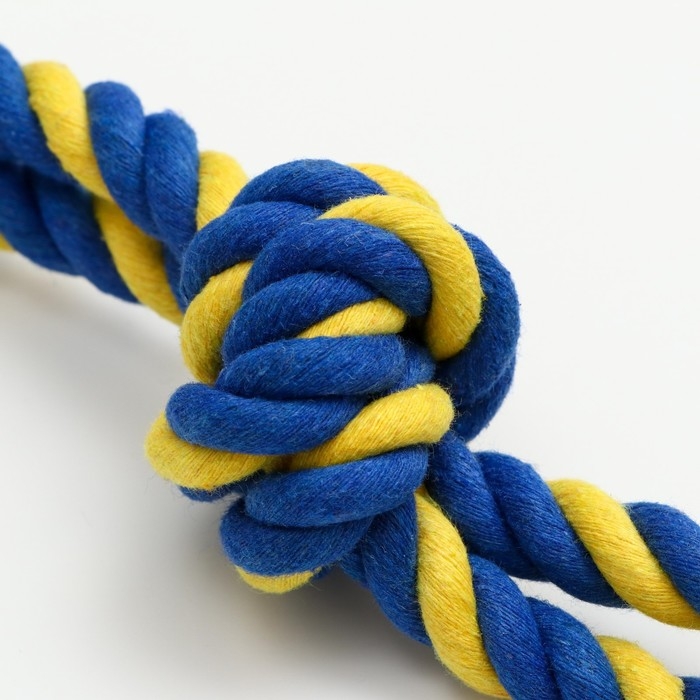 Игрушка-дразнилка канатная для собак, двойная, до 50 см, до 140 г, синяя/жёлтая