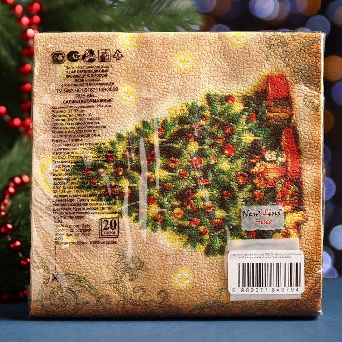 Новый год. Салфетки бумажные New Line Fresco «Ёлка», 33х33 см, 2 слоя 20 листов