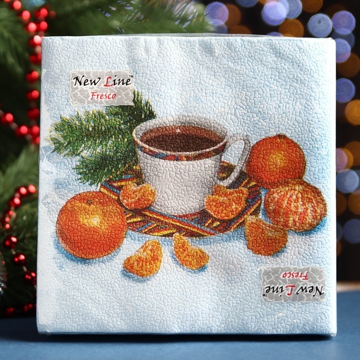 Новый год. Салфетки бумажные Fresco "С новым годом" Мандарины", 2 слоя, 33*33 см, 20 листов