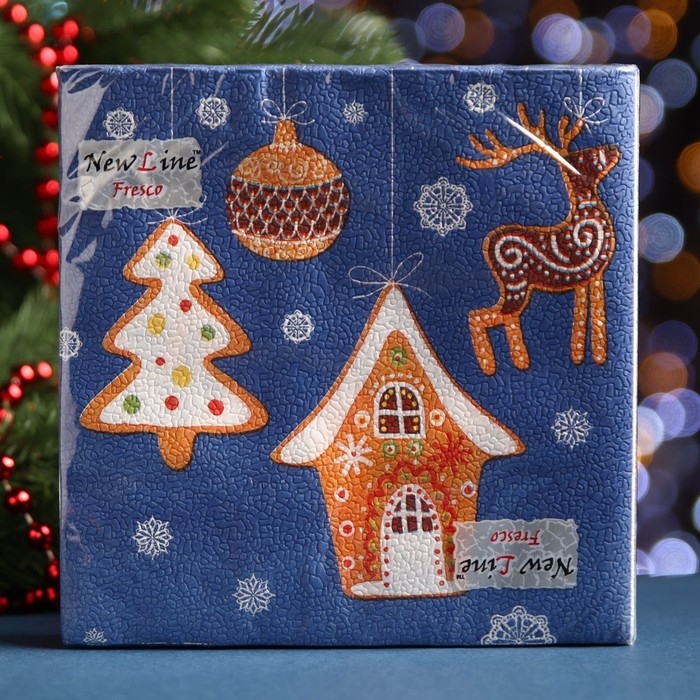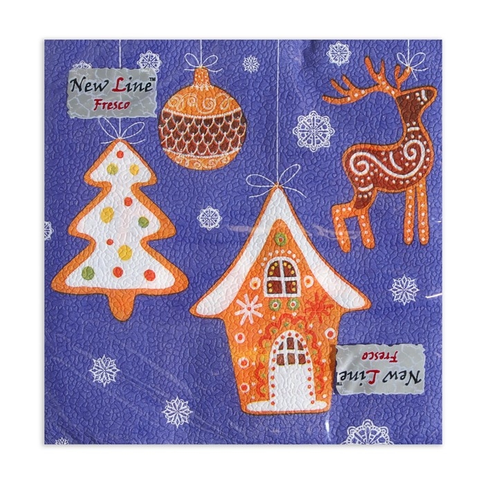 Новый год. Салфетки бумажные Fresco "Новогодние пряники", 2 слоя, 33*33 см, 20 листов