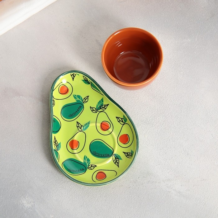 Чайная пара керамическая Persea, кружка 100 мл, блюдце 14х10 см, цвет зелёный-коричневый