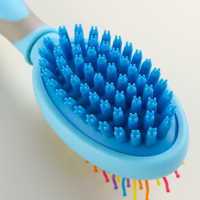 Двусторонняя щётка - расческа с волнистыми зубьями, средняя, 6 х 19 см, голубая