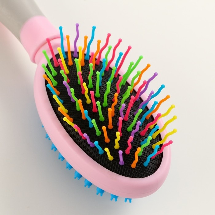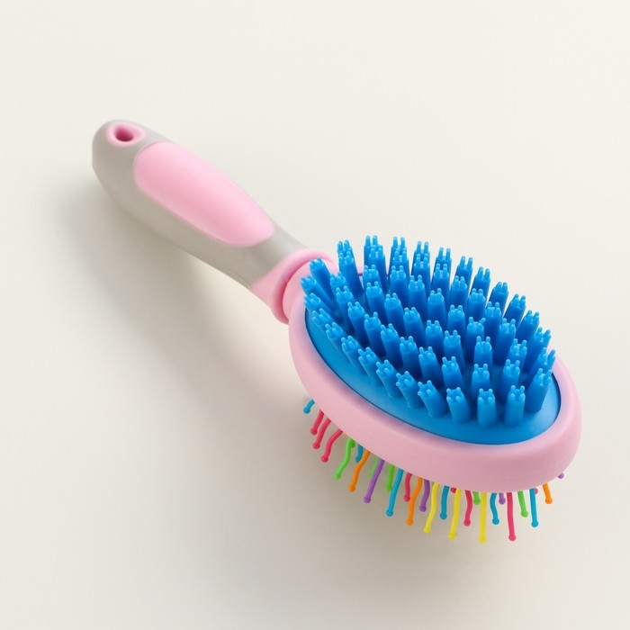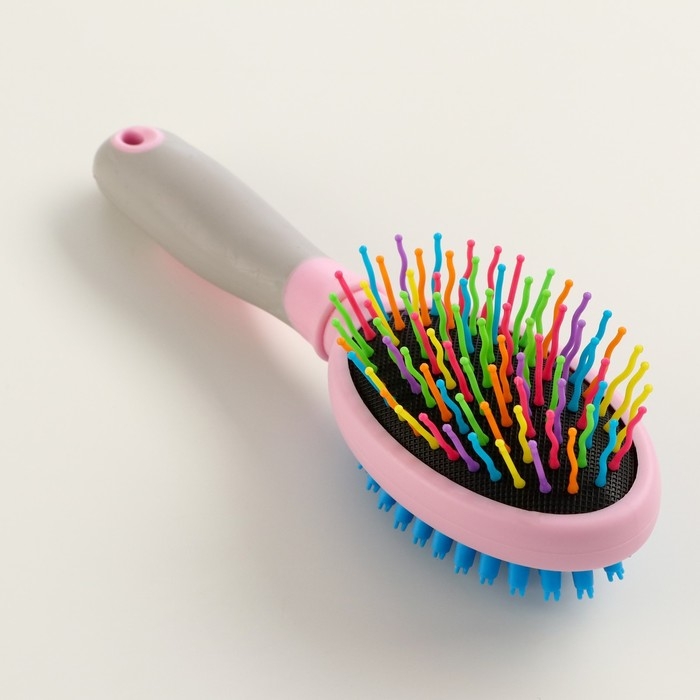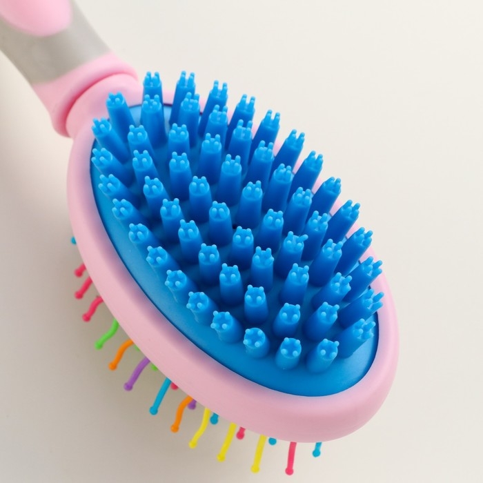 Двусторонняя щётка - расческа с волнистыми зубьями, средняя, 6 х 19 см, розовая