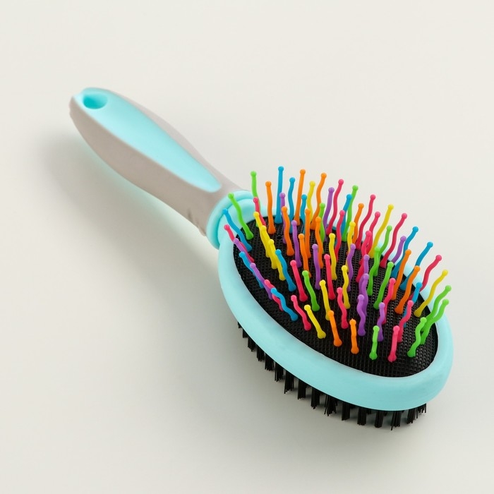 Двусторонняя щётка - расческа с волнистыми зубьями, средняя, 6 х 19 см, мятная