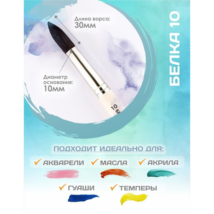 Кисть для рисования, Белка круглая №10 (диаметр обоймы 10 мм; длина волоса 30 мм), деревянная ручка, Calligrata