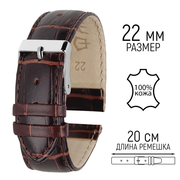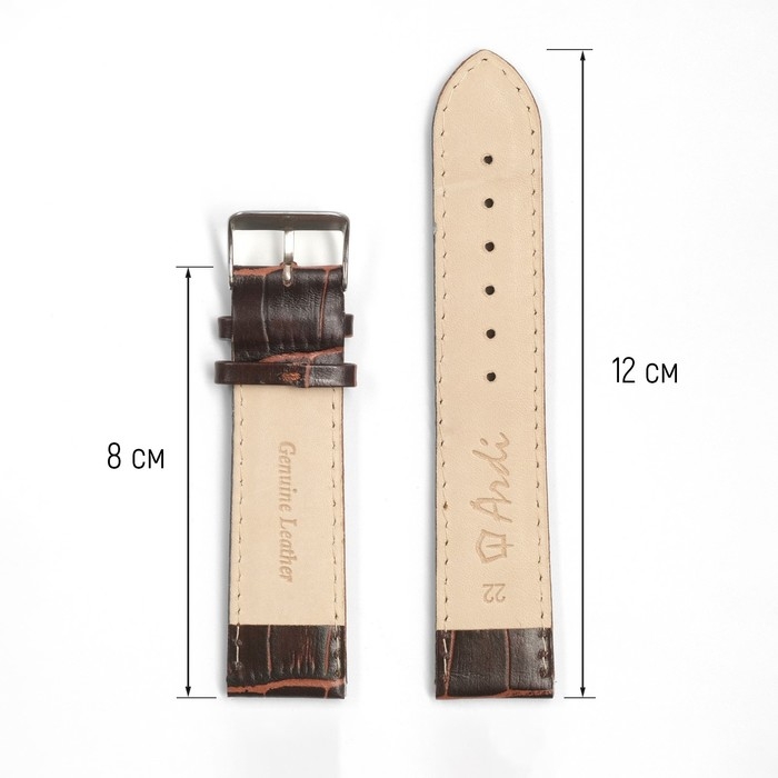Ремешок для часов, 22 мм, запряжник 80 мм, горт 120 мм, натуральная кожа, коричневый