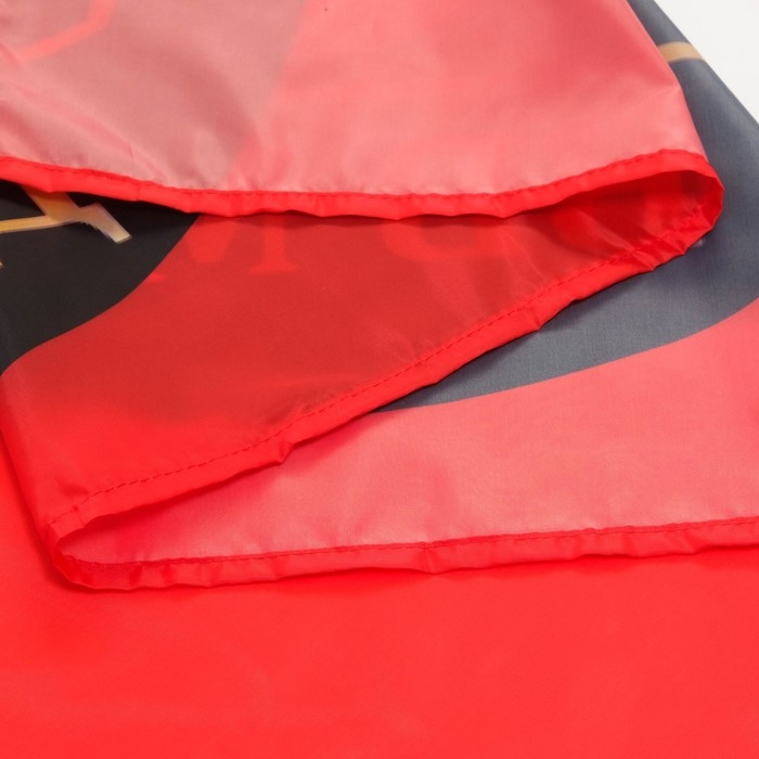 Флаг размером 90 х 135 см, выполнен из специальной, прочной и легкой ткани (полиэфирный шелк), которая достойно выдерживает всепогодные условия. Яркое, насыщенное изображение нанесено методом шелкография (не выгорает на солнце). В полотнище имеется карман для вставки флагштока (древко), с закрепляющими тесемками внизу. Флаг продается без флагштока. В качестве него вполне подойдет пластиковая ПВХ труба диаметром 1,5-2 см (продается в любом строительном магазине).