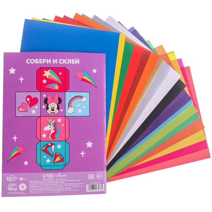 Набор "Минни Маус и единорог" А4: 10л цветного одностороннего картона + 16л цветной двусторонней бумаги