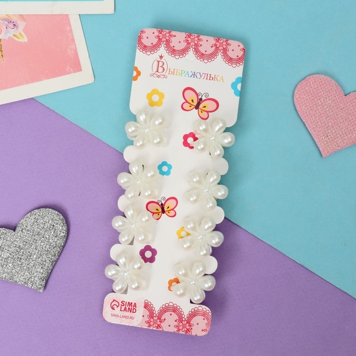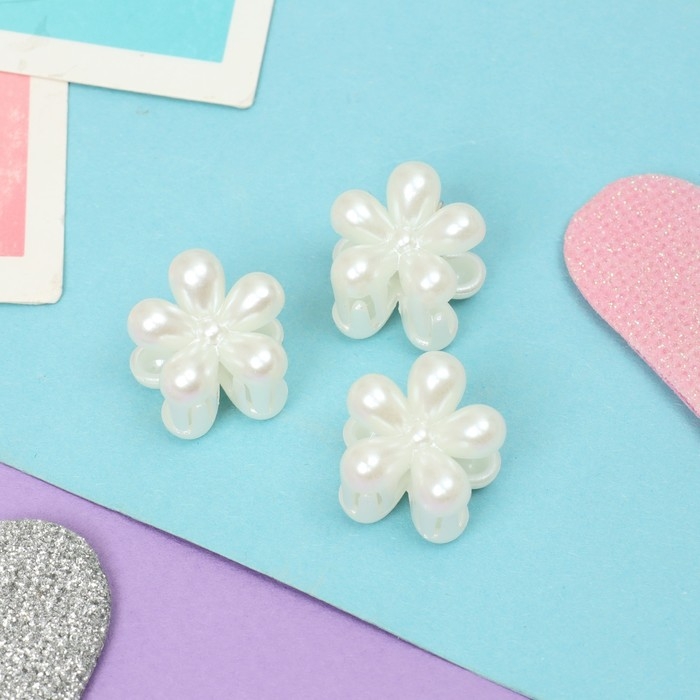 Краб для волос "Беатрис" (набор 8 шт) цветочек, 2 см, белый