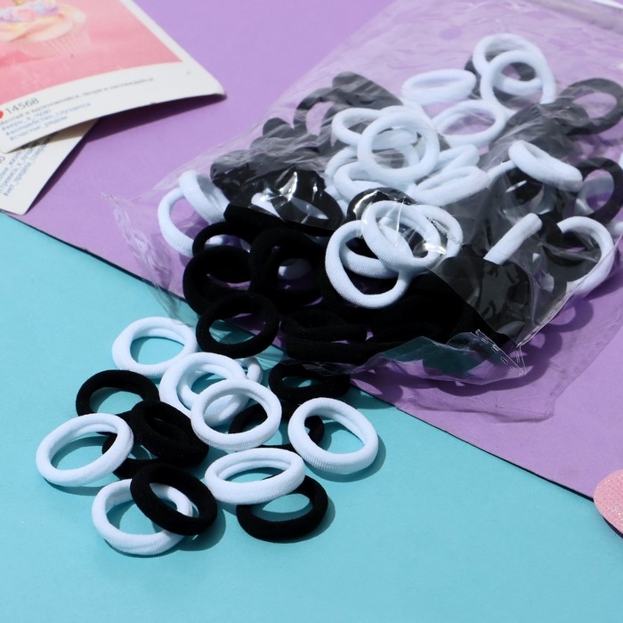 Резинка для волос "Махрушка" (набор 100 шт) 2,5 см, чёрно-белый