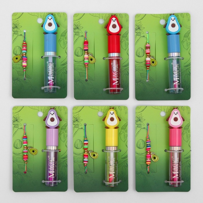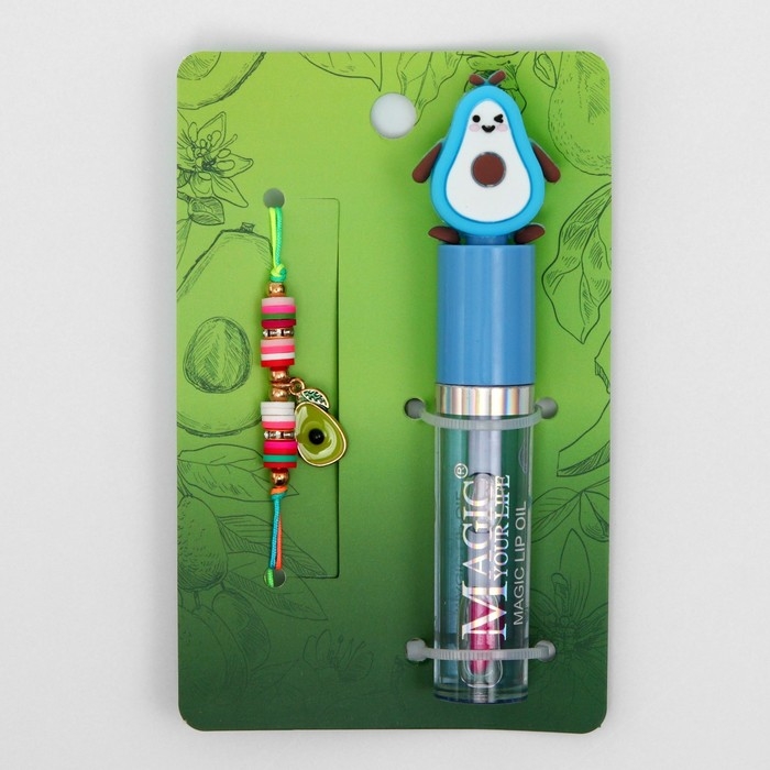 Набор 2 предмета: браслет, блеск для губ «Авокадо» с листочком, цветной