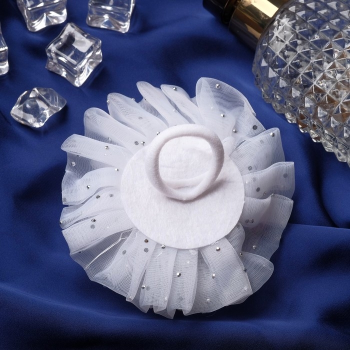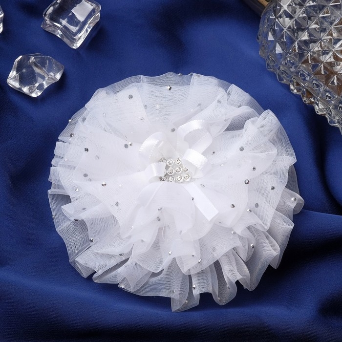 Резинка для волос бант "Школьница" капельки центр блеск, d-10 см, белый