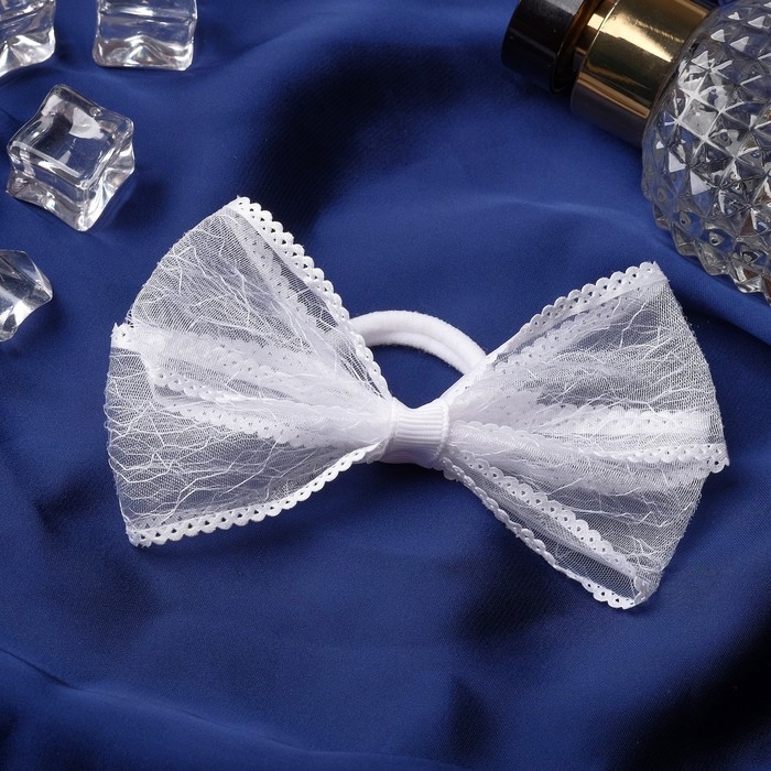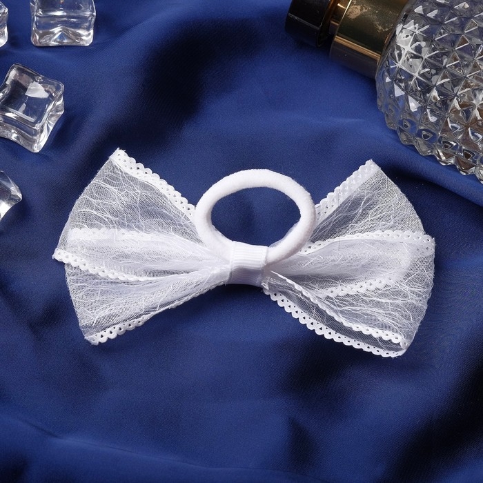 Резинка для волос "Бантик" кружевной край полоски, 9 см, белый