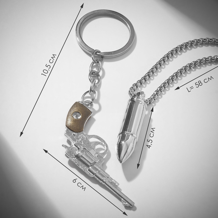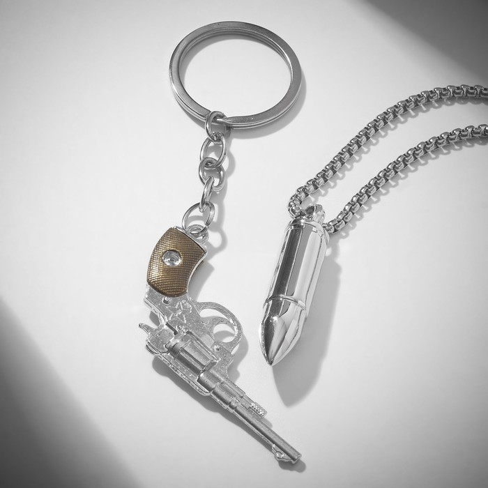 Набор 2 предмета: кулон, брелок «Револьвер», цвет серебро, 70 см