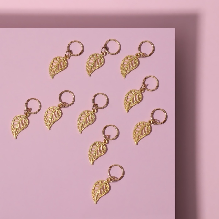 Пирсинг для волос «Листья», 3,5 × 1 см, 10 шт, цвет золотистый