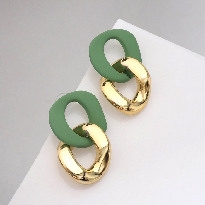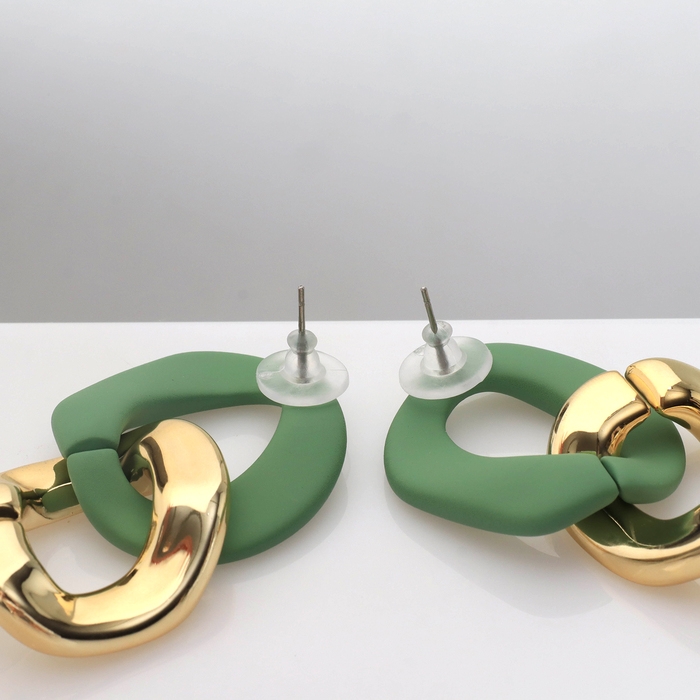 Серьги пластик «Цепь» 2 звена, цвет мятный в золоте