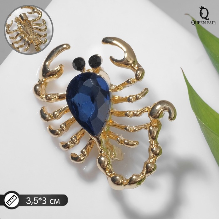 Брошь «Скорпион» капля, цвет чёрно-синий в золоте