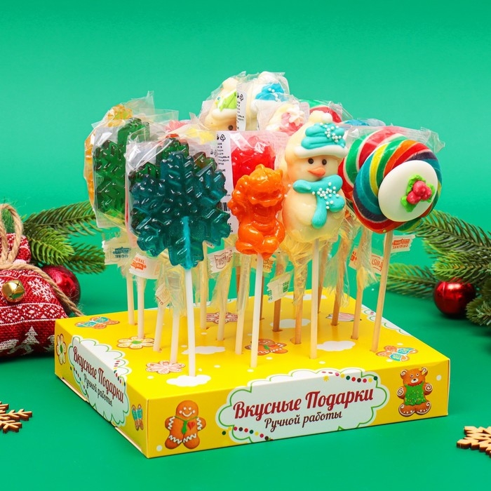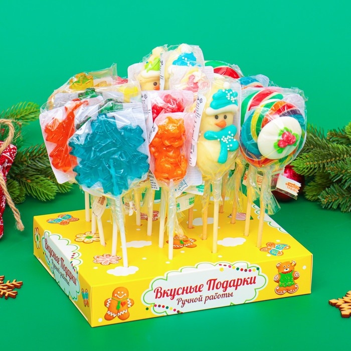 Леденец в новогодней тематике - это отличный, оригинальный подарок. Леденцы на палочке произведут WOW эффект на гостей, украсят любой десерт или могут стать оригинальным подарком ребёнку и взрослому. Подойдёт в качестве украшения - леденцы на торт и для украшения коктейлей. Сладость на палочке, отличное угощение для больших и взрослых любителей сладостей. Упакован в индивидуальную пузырчатую пленку. Длина палочки позволяет их использовать как декор в качестве украшения торта.