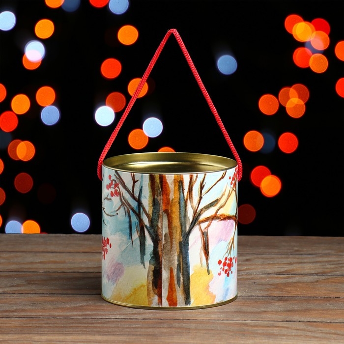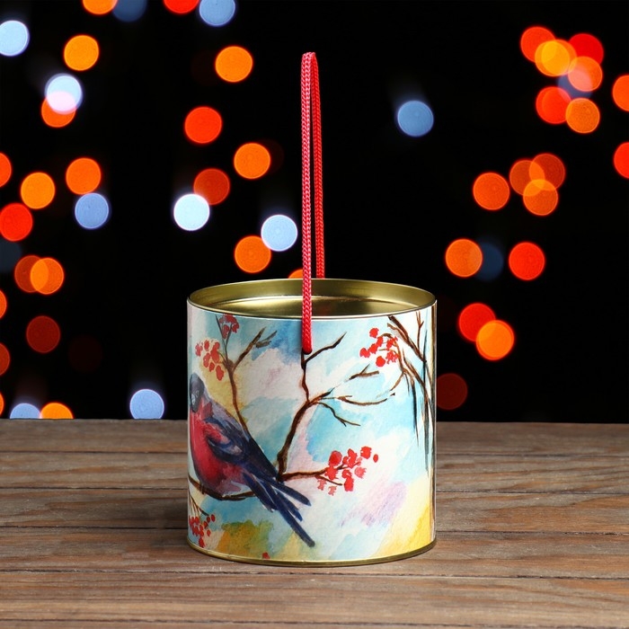 Подарочная туба выполнена из плотного картона и металла. Изделие оформлено красочным изображением. Туба оснащена крышкой. В комплект входит подвесное декоративное украшение.