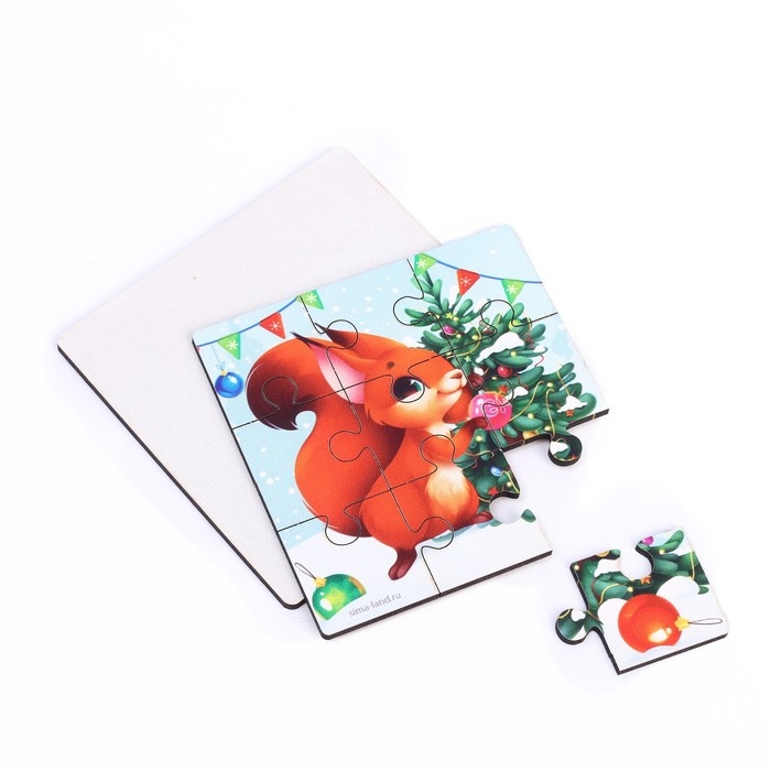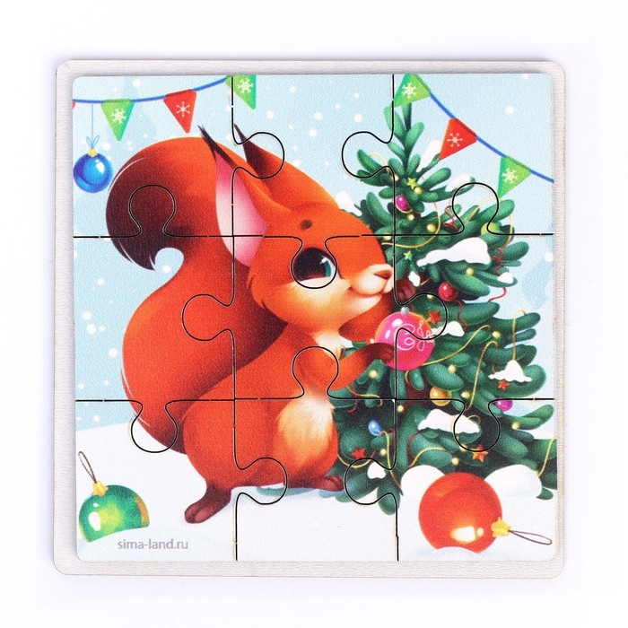 Дервянные пазлы на новый год «Праздник у белочки»