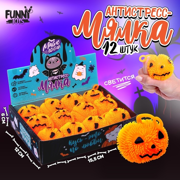 Хэллоуин. Антистресс сквиш мялка «Тыква», в шоубоксе