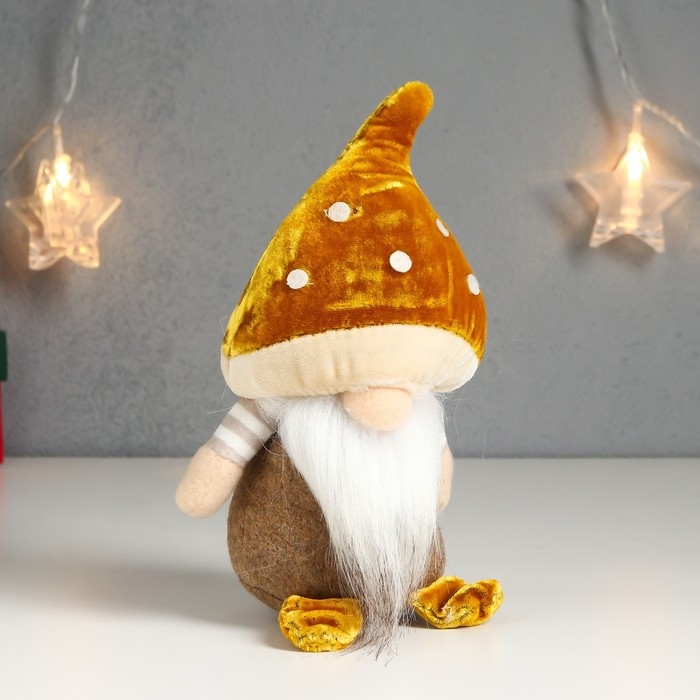 Кукла интерьерная "Гном- лесной грибочек" 15х9х7 см