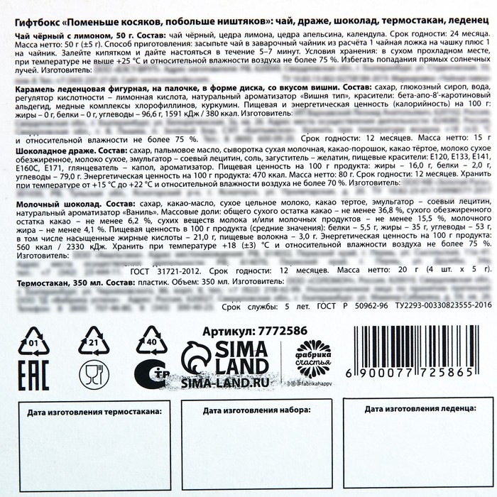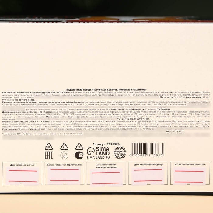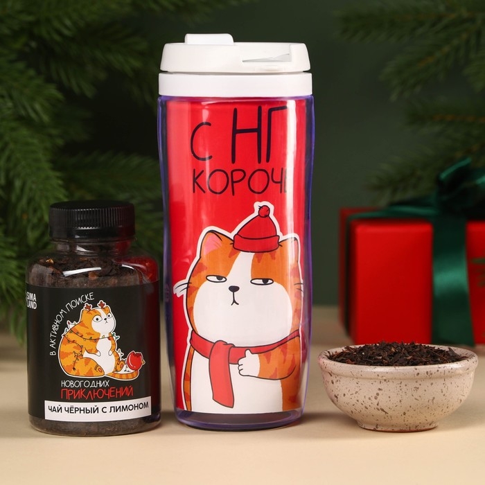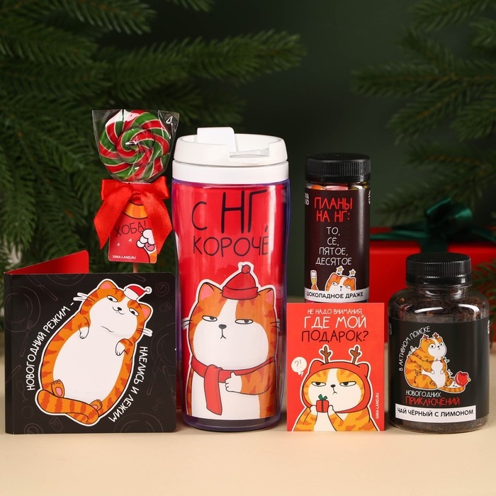 Гифтбокс «Поменьше косяков, побольше ништяков», чай, драже, шоколад, термостакан, леденец